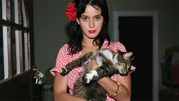 Katy Perry has a side kick: a cat that is appropriately named Kitty Purry.
